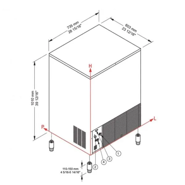 • الأبعاد: 738 × 600 × ارتفاع 1120 ملم