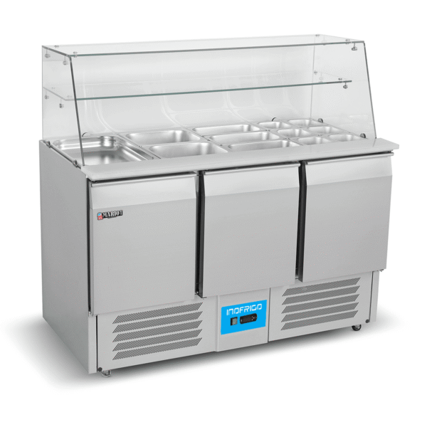 • Glass cover , design for GN pans, hight density insulation for cooling system